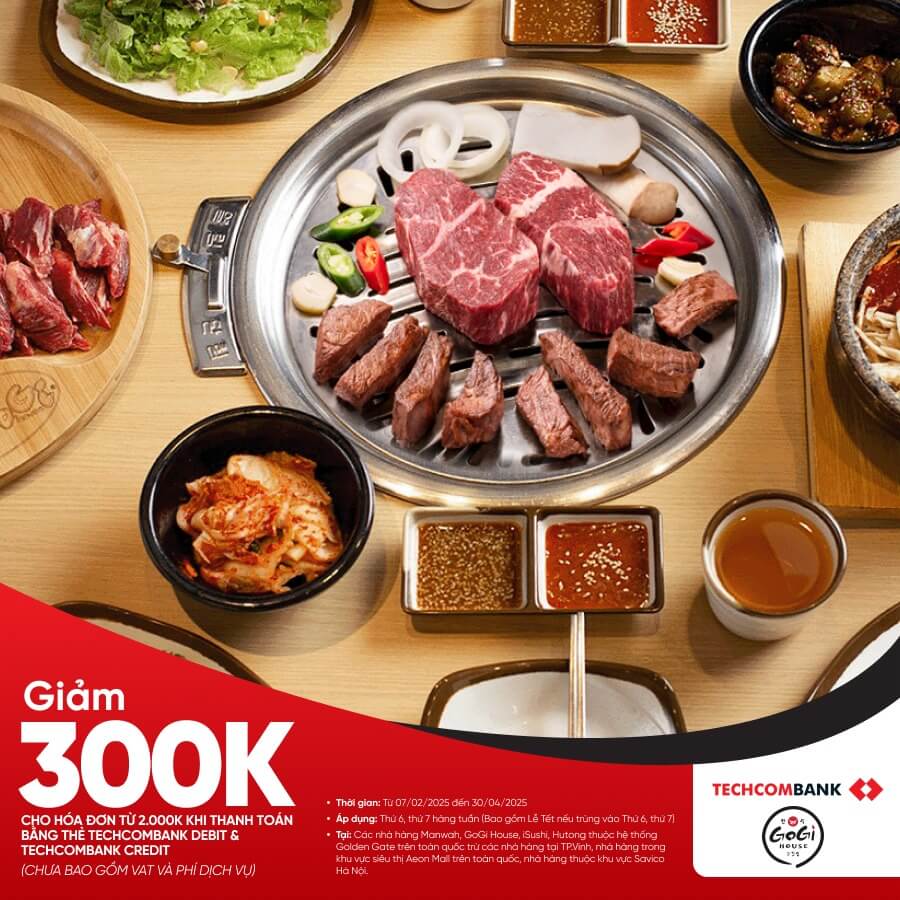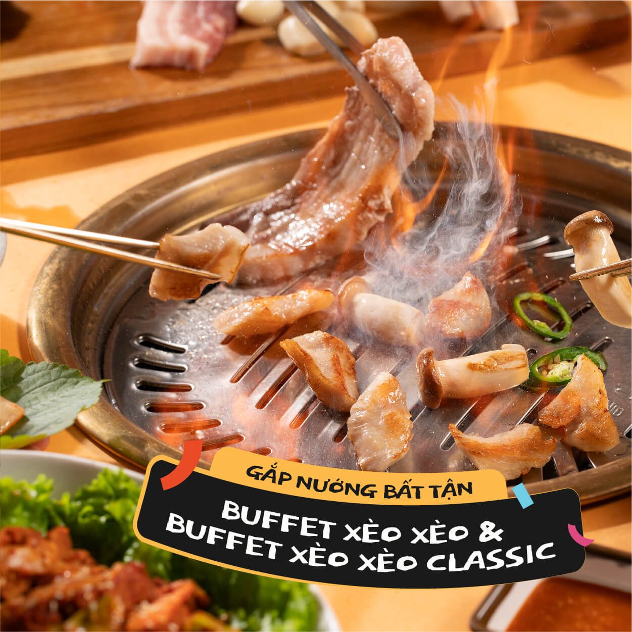 Gogi phục vụ cả buffet và combo tùy chọn theo nhu cầu khách hàng. Buffet giá hợp lý, nhiều mức từ 199.000đ – 399.000đ/người. Ngoài các món nướng, bạn có thể thưởng thức thêm tokbokki, cơm trộn, mì lạnh, canh kim chi, lẩu Bulgogi… đúng chuẩn Hàn.